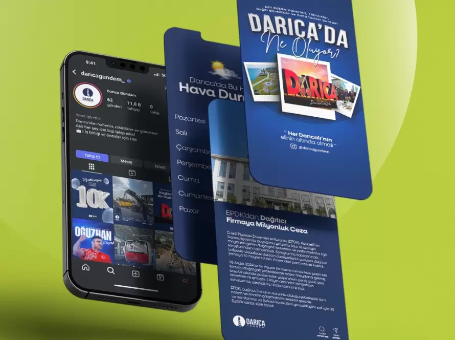 Darıca Gündem’in dijital yayıncılık yolculuğunda, markalaşma sürecinden itibaren yanında yer aldık. Logo ve görsel kimlik tasarımıyla başlayan bu iş birliğini, sosyal medya yönetimi, içerik üretimi ve haber dili kurgusuyla bütüncül bir yapıya taşıdık.
